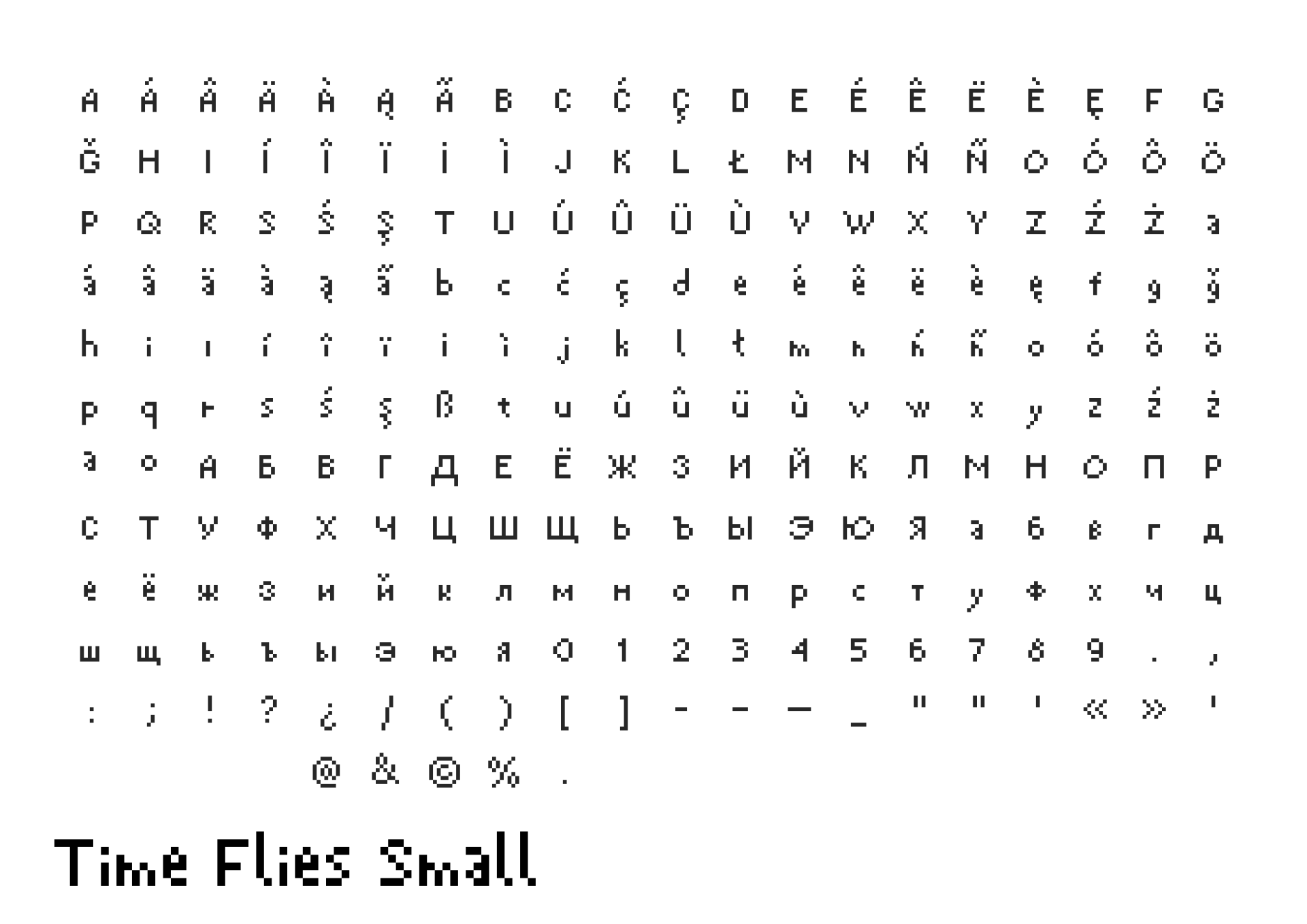 A collection of hand-drawn pixel fonts originally made for the game Time Flies. You can use them under CC BY-SA 4.0.